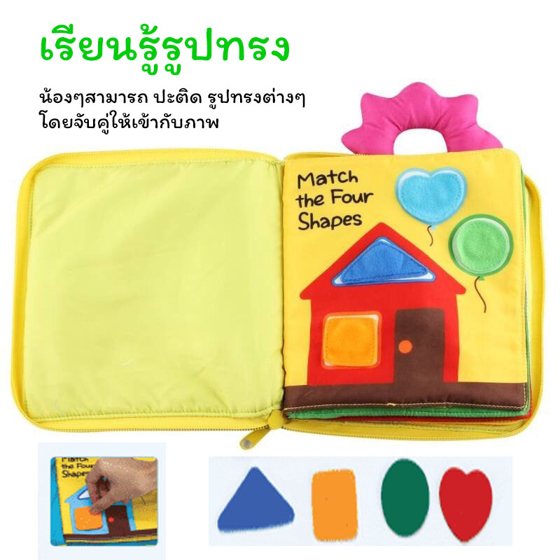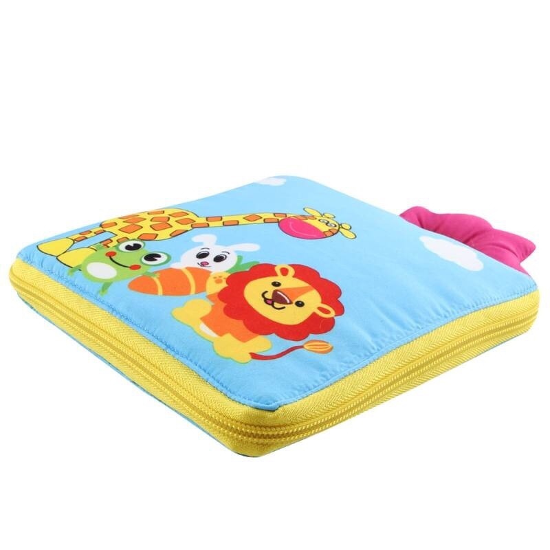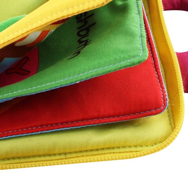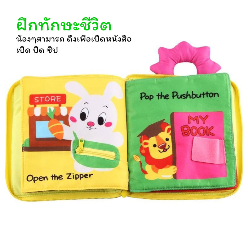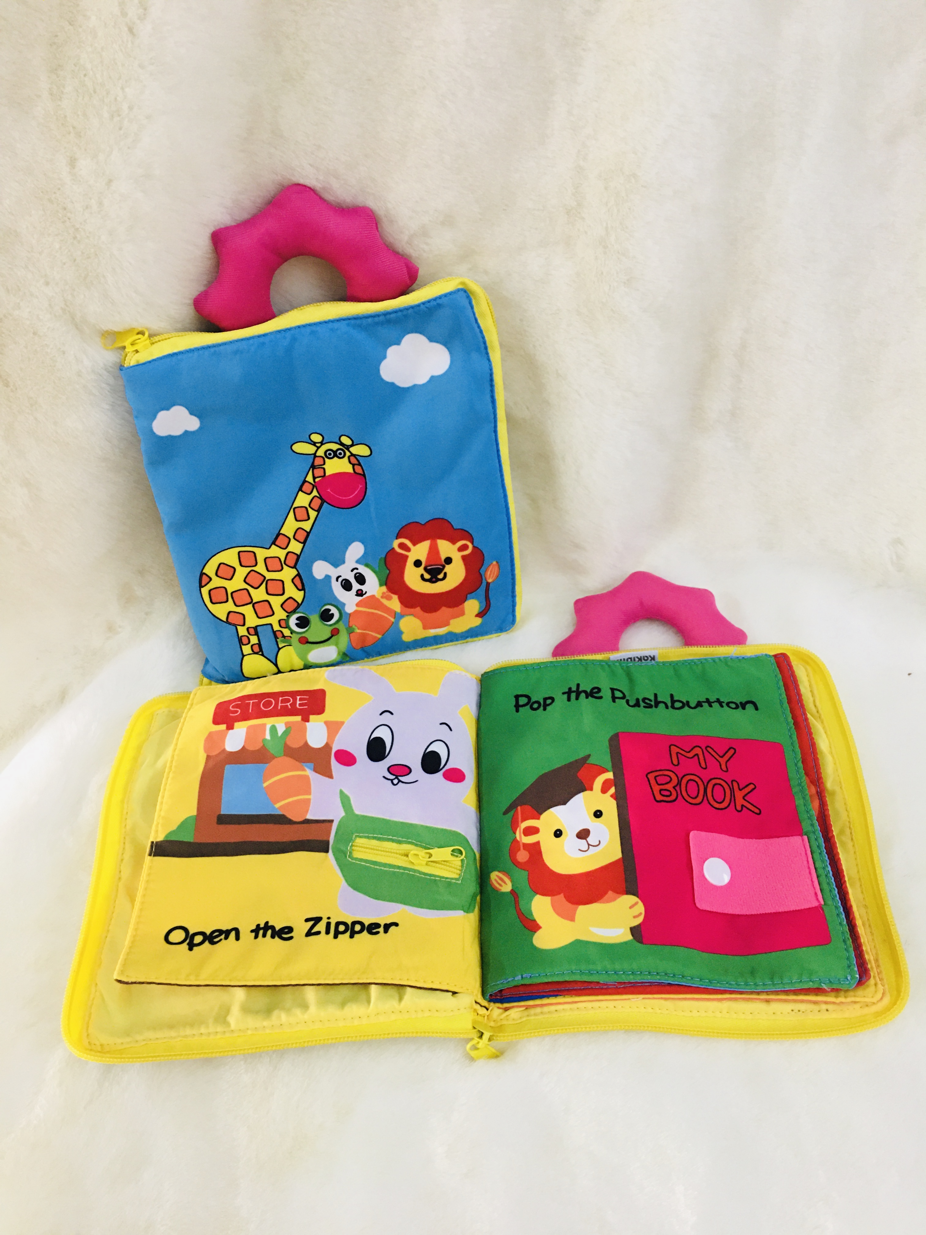 หนังสือผ้าแบบเสมือนจริง เย็บตัด มีตัวปะติด โดยมีพี่ยีราฟ สอนให้รู้จักทักษะพื้นฐานในชีวิตต่างๆ เช่น รู้จักรูปทรง การติดกระดุม ผูกเชือกรองเท้า อ่านเวลา ใช้ประกอบการเล่านิทาน เล่าเรื่องเพื่อฝึกให้น้องๆมีทักษะพื้นฐานในการดำรงชีวิต สามารถฝึก ผูก ปะ ติด ได้จริง ทำให้น้องๆสามารถฝึกได้จริงจากหนังสือเล่มเดียว ถือว่าคุ้มสุดๆไปเลยค่ะ